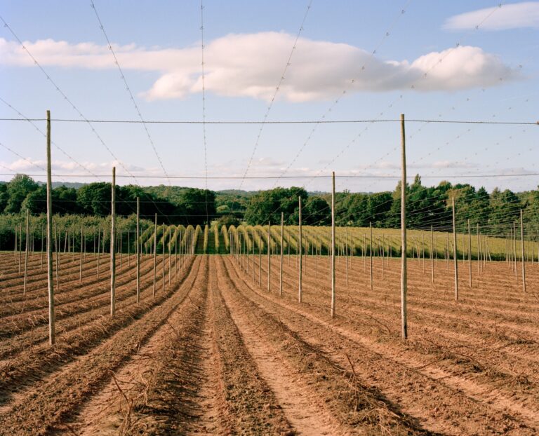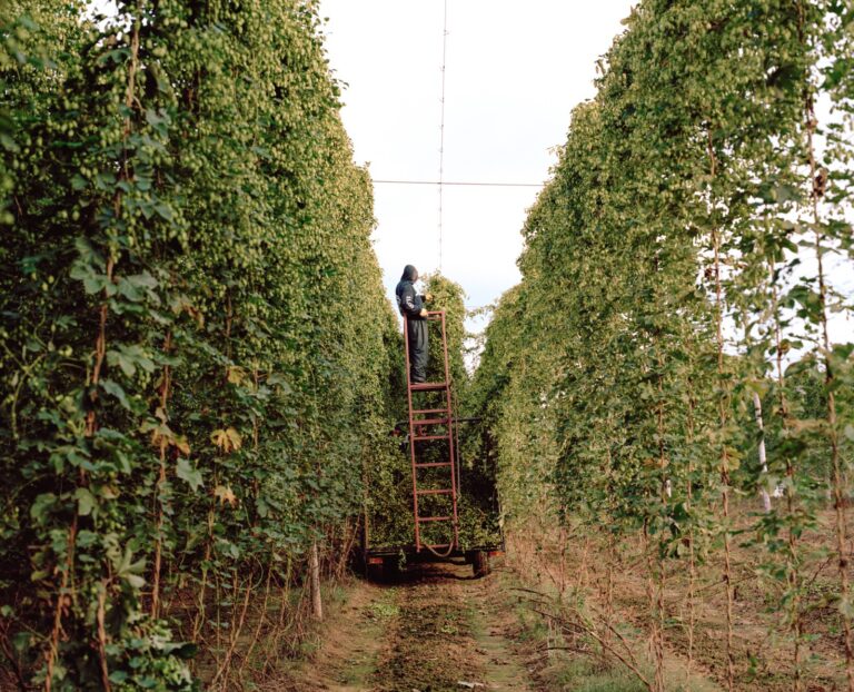 Dotted across fields of the Wye Valley and the foothills of the Malverns, dense avenues of fruit trees and hop bines dissect the gilded fields of wheat sown across the arable land. Elsewhere, the sun moves over swathes of translucent plastic; inside, rows of blueberries, raspberries and strawberries stretch as far as the eye can see. Waves of sound bounce against the polytunnels: indistinct voices, the tinny acoustics of Balkan music playing from a phone, the rustling of leaves and crates being stacked. Teams of people rush back and forth between plants and trucks, picking as they go. On the surface, harvest months in rural West Midlands appear bountiful and almost timeless, the epitome of a rural idyll.